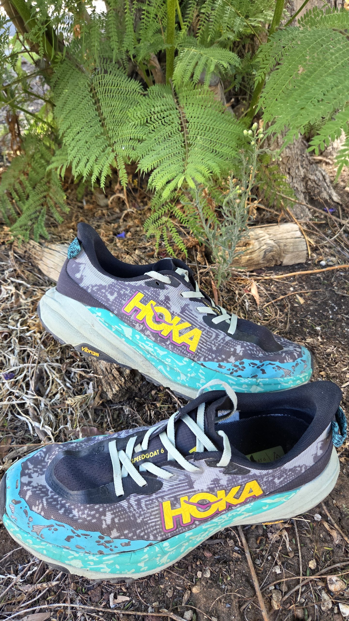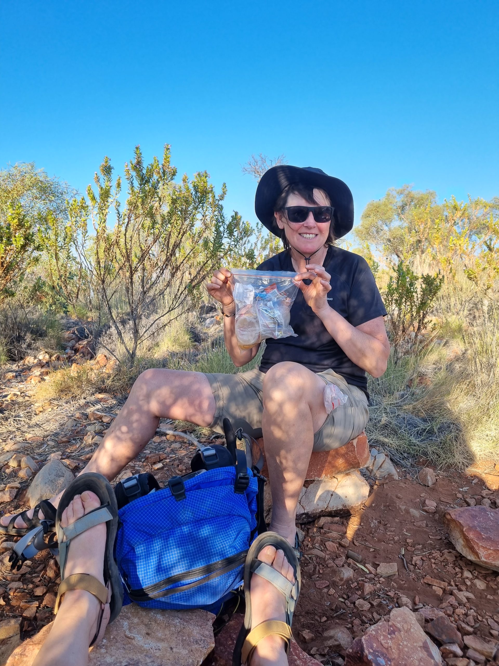 After dealing with blisters on a 14-day trek through Australia’s Red Centre, we switched from boots to HOKA Speedgoat 6 trail runners and went up half a shoe size to accommodate foot swelling. This hiking gear hack made a huge difference for us on long hikes. If ankle support is a priority for you, stick with boots but still consider going up half a size.