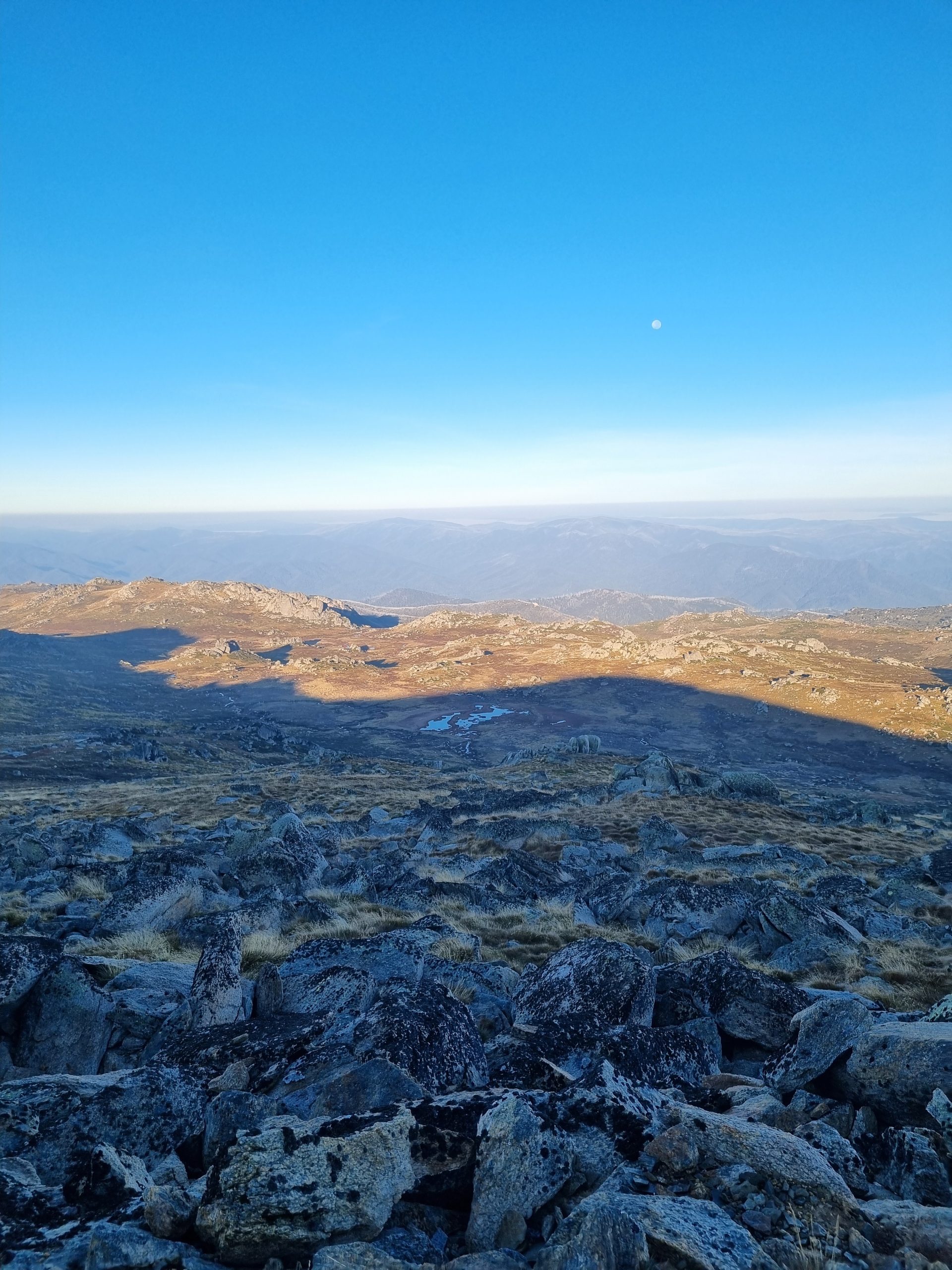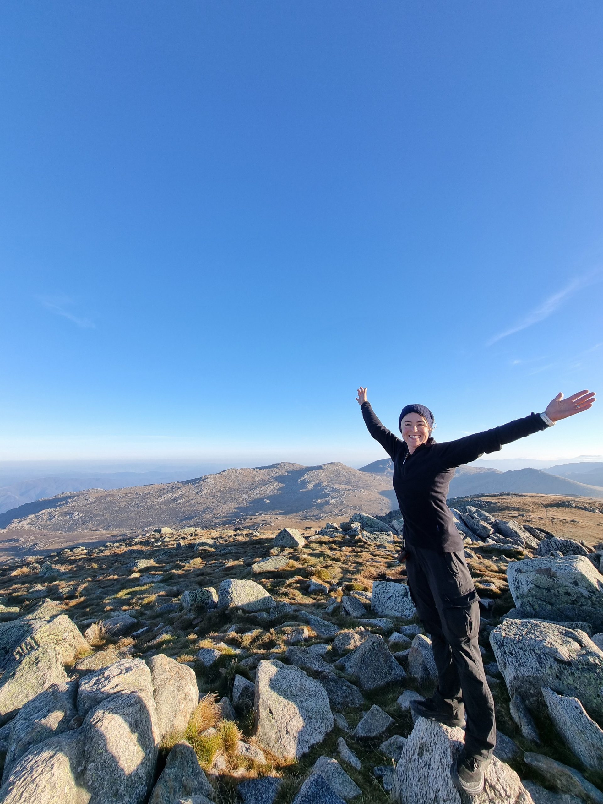 At 6.30am I rejoined the trail, making my way up to Mount Kosciusko (2,228m) – Australia’s highest peak, reaching the summit at around 7am, without the typical crowds (just a lone jogger).