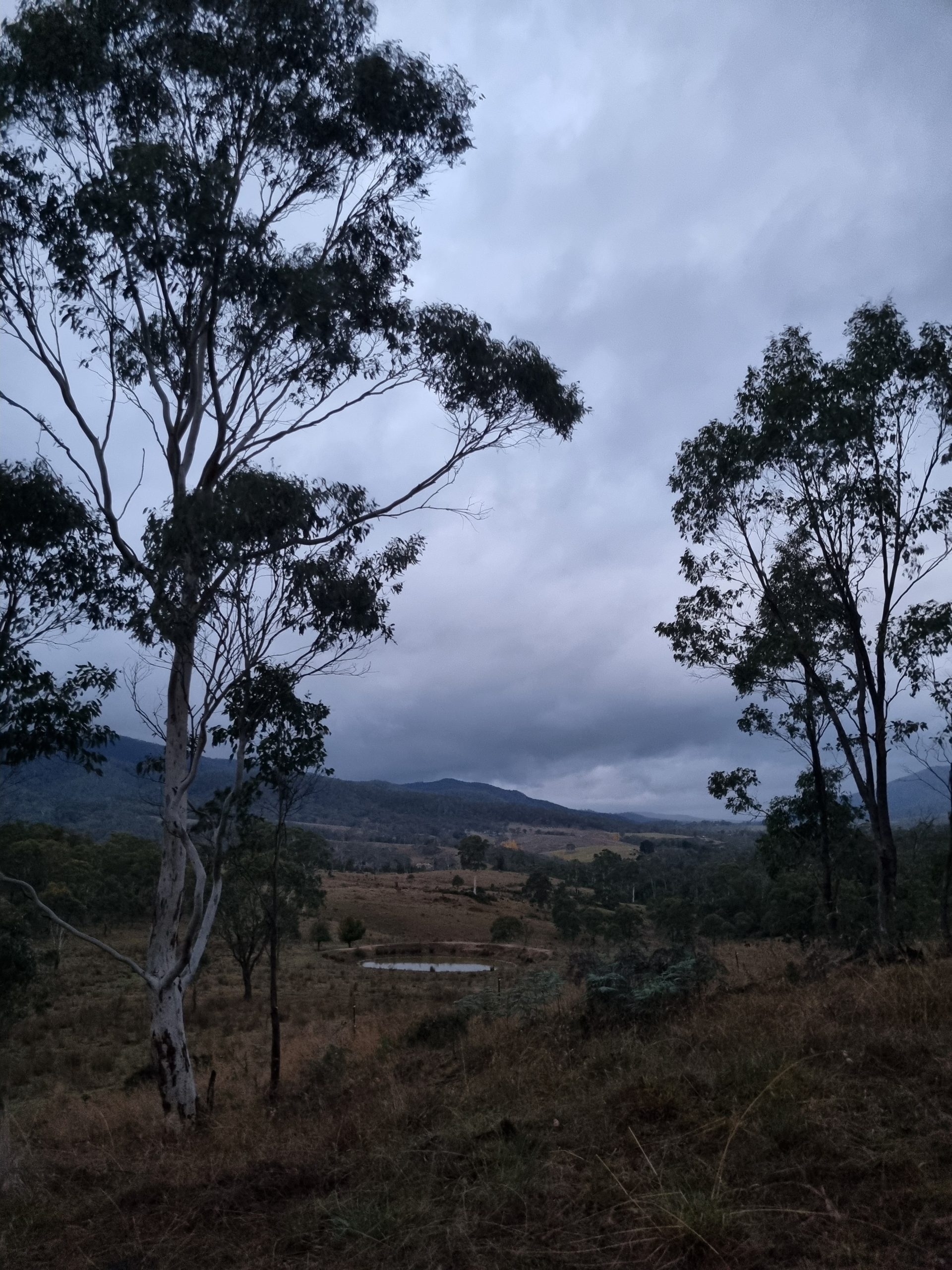 A steep climb up to a spur awaited me on the other side of the creek, which then veered onto an old 4WD track. Grey clouds, promising rain, remained overhead all morning.