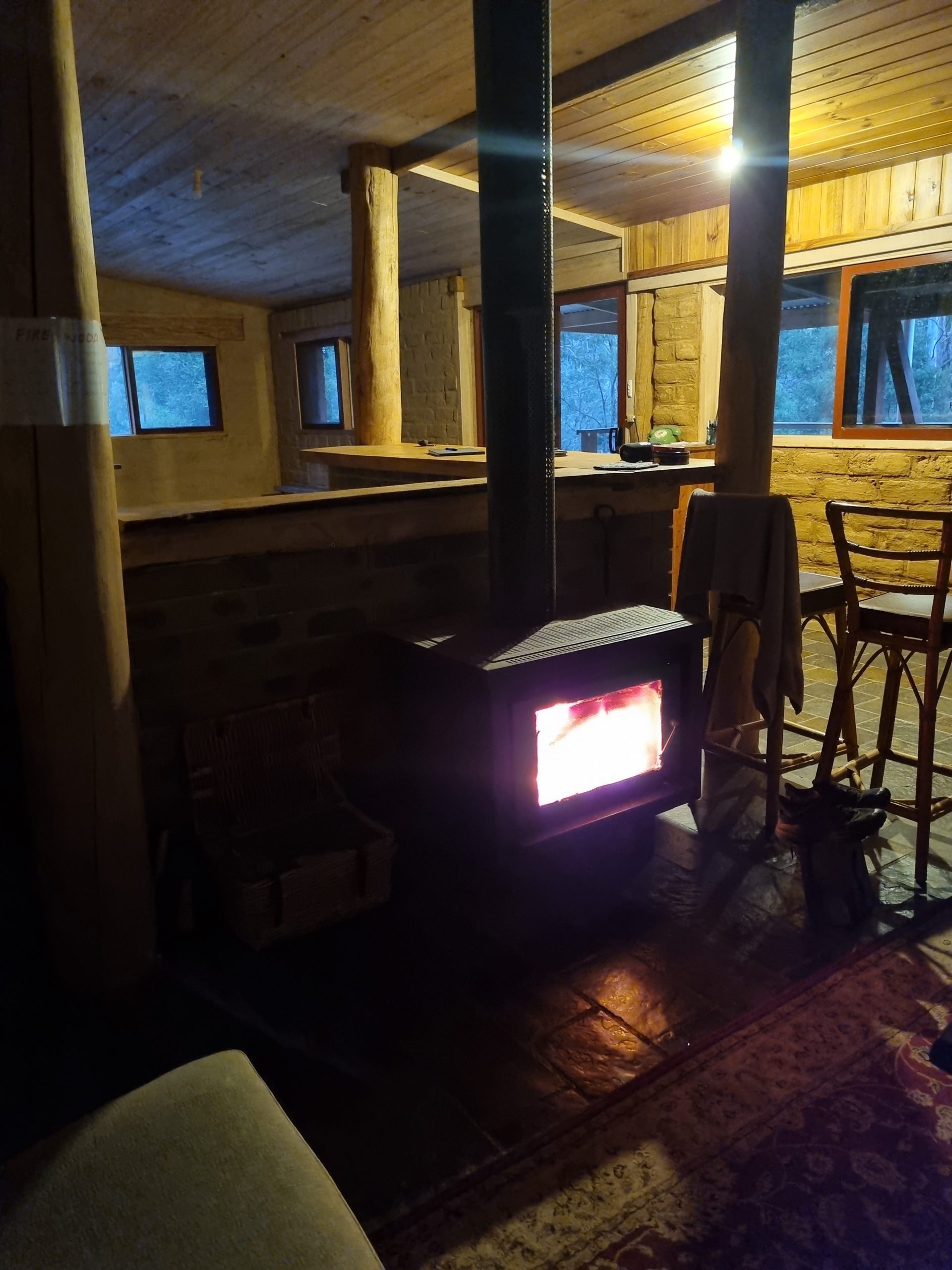 Wind, fog and a creek tumble—then a sweet reunion and a cosy night by the fire with my wife at Glen Wills.