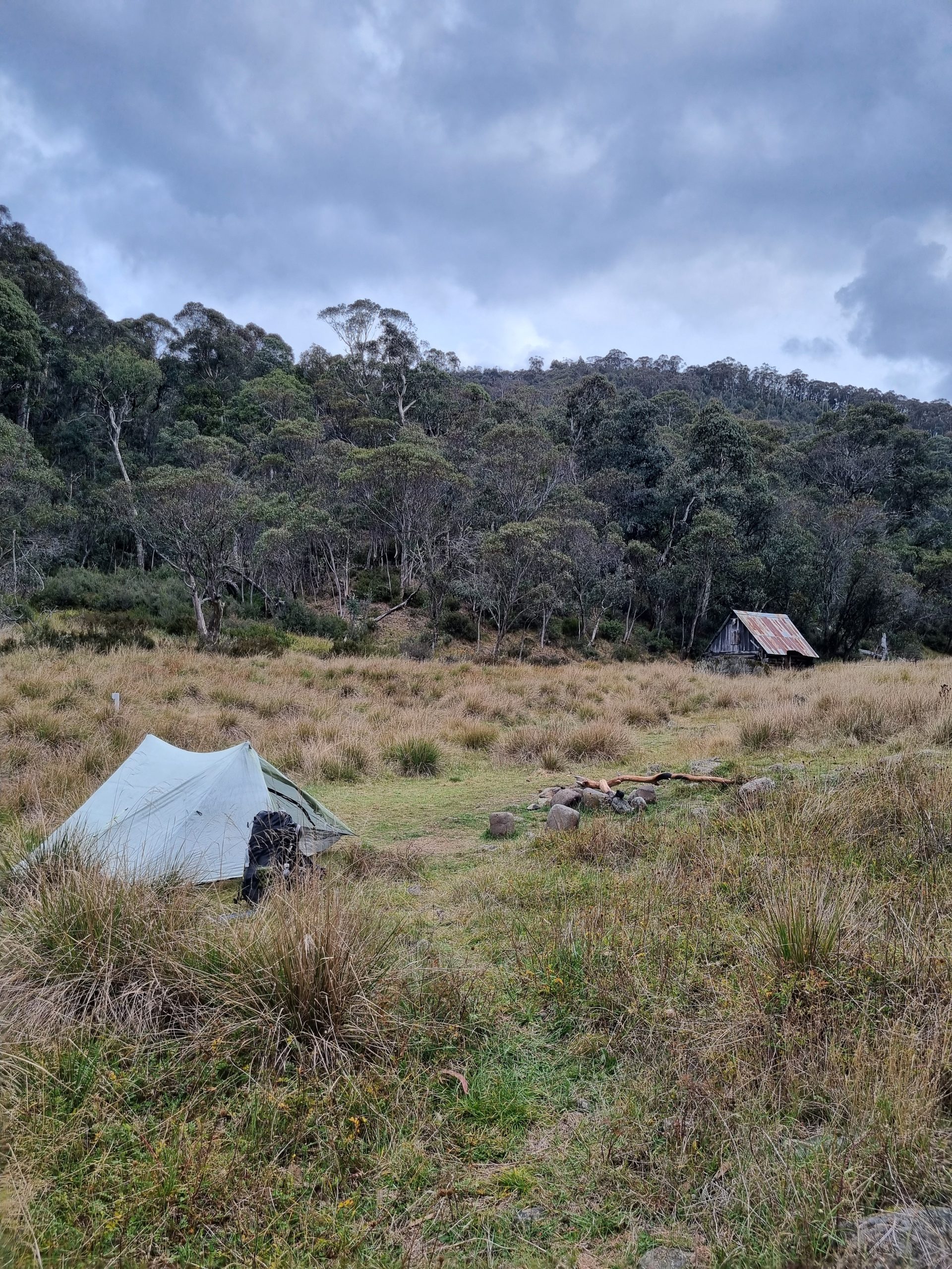 Anticipating the crowds would flock to the campground, I found a flat patch of earth next to a makeshift fire pit 50 metres or so from the hut. By 3pm, my home was set up and I had a fire going.