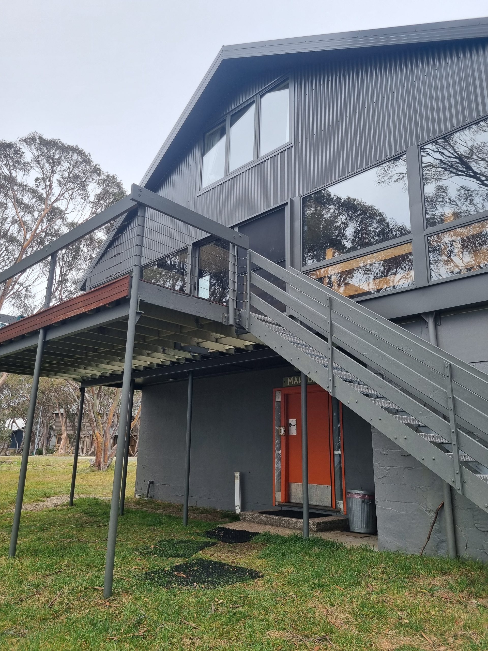 Steep foggy climb to Hotham, icy winds, chai latte and a hot shower, then solo lodge comfort and video chats with my wife.