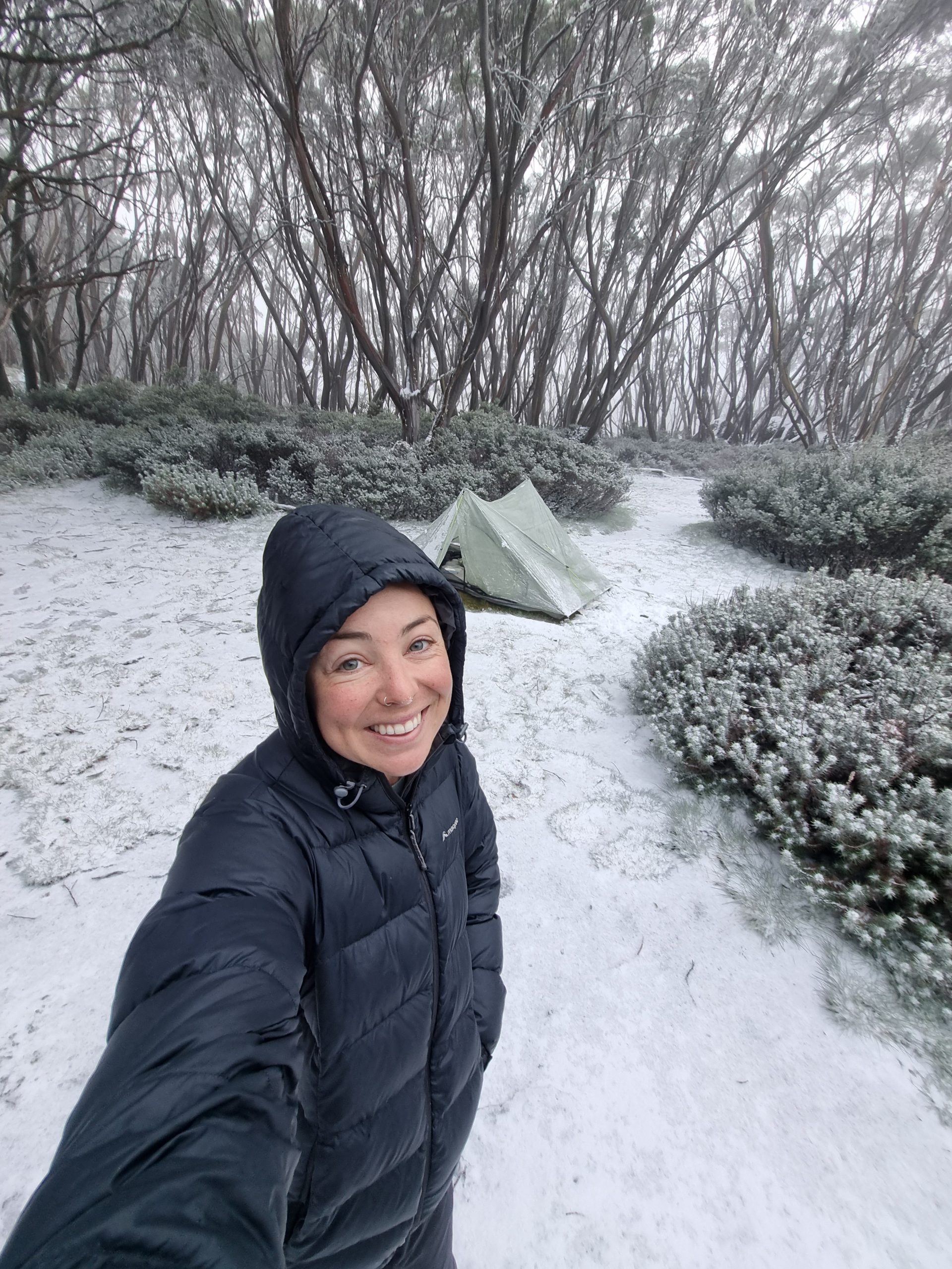 I woke repeatedly through the night as snow had started to fall and gather on my tent, causing it to droop, so I would push it off by pressing the inside of the tent.