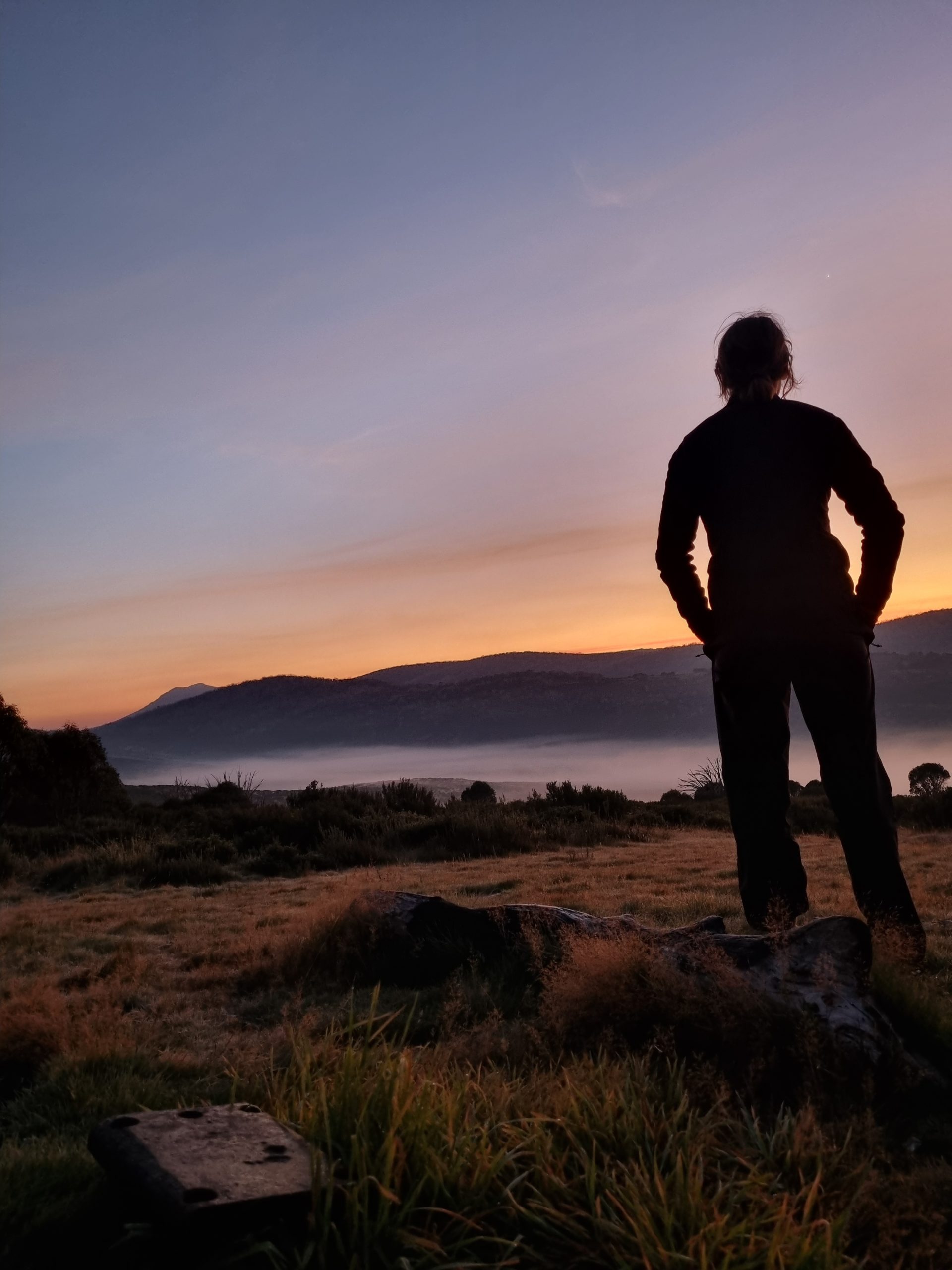 I woke at 5.30am at Grey Mare’s Hut to a stunning sunrise and thick mist over the valley below.