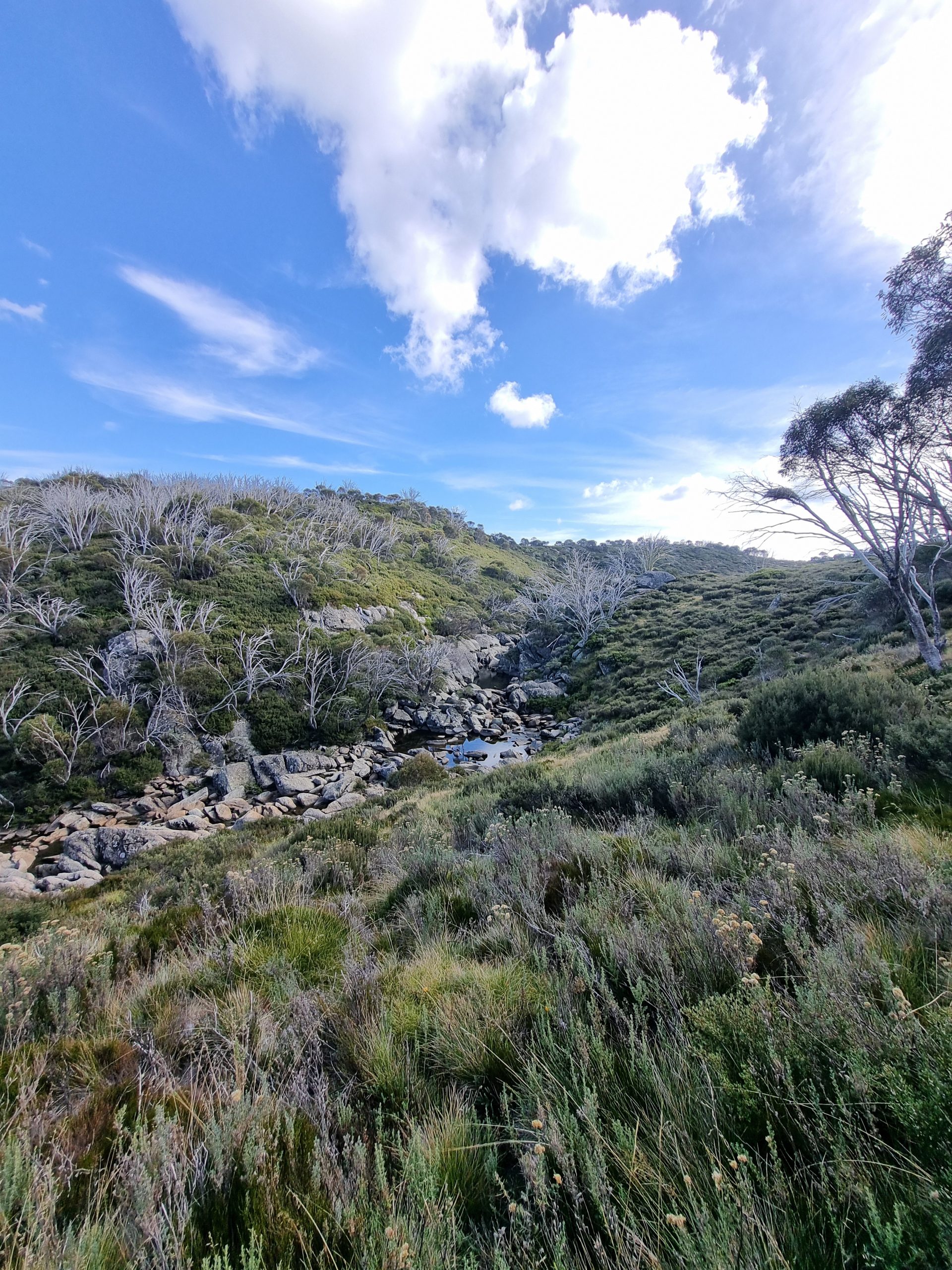 This morning’s wanderings took me over multiple little streams of rushing water, which culminated in a crossing of the stunning Geehi River.