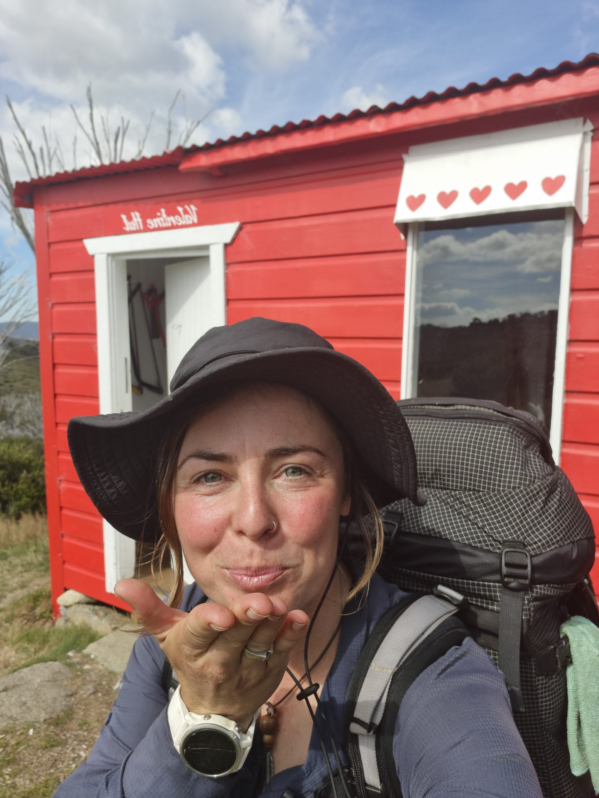 From here, I headed south to Valentine Hut – a small wooden hut painted bright red and with white love hearts above the windows.
