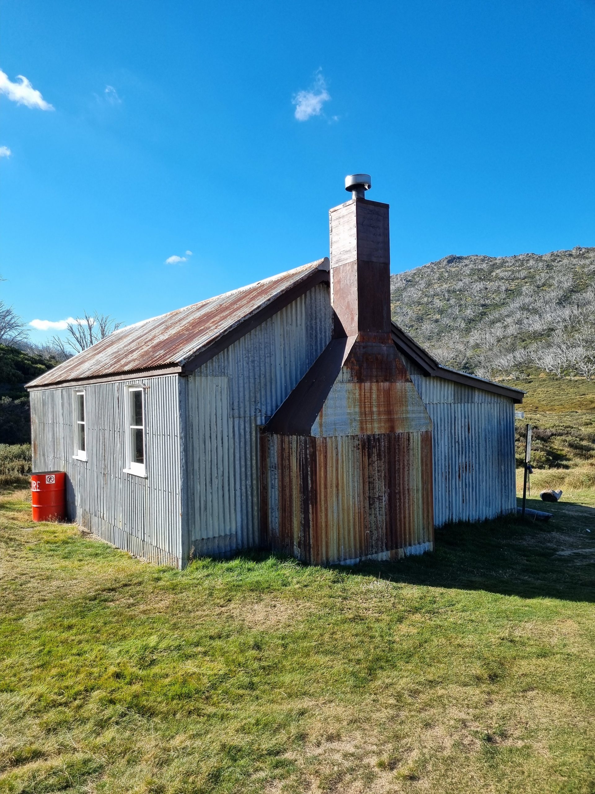 This brightly coloured, stunning hut made for a bizarre and almost comical sight on the horizon, taking centre stage among hills of lifeless grey trees.