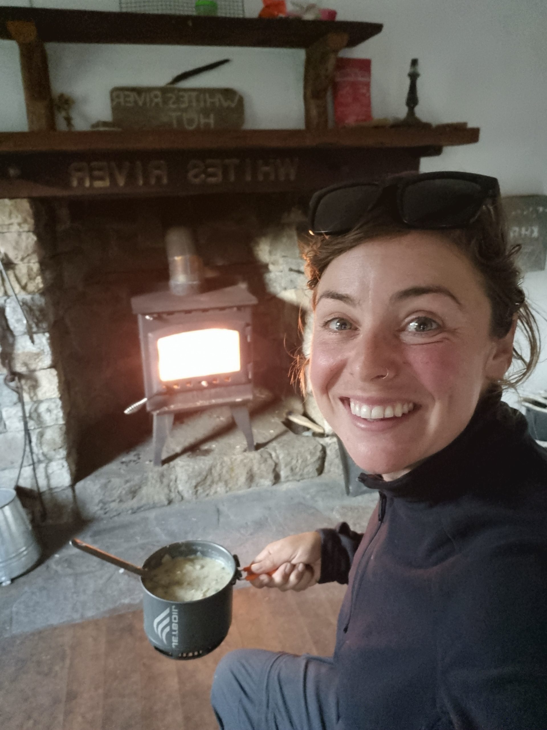 I chilled here for lunch, then continued my travels and hut hop to Whites River Hut, where I pitched my tent beside the flowing stream then ventured into the hut for a solo dinner beside the fire.
