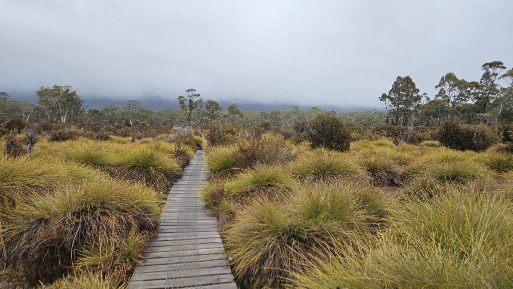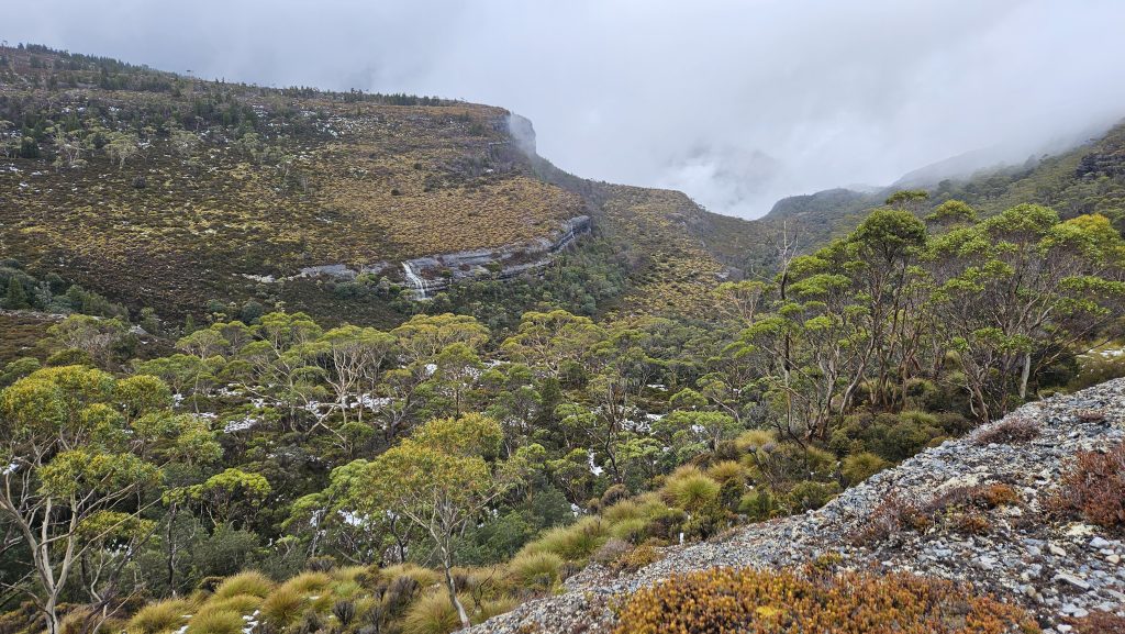 Frosty mornings, rushing streams, mossy forests, wombats, and waterfalls marked our final Overland Track day before reaching Echo Point Hut.