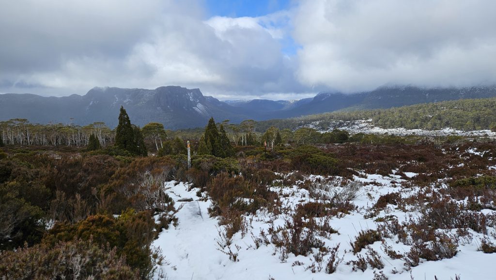 Waterfalls roared, snow melted underfoot, and a short, sweet hike delivered us to Windemere Hut after a spectacular day on the Overland Track.