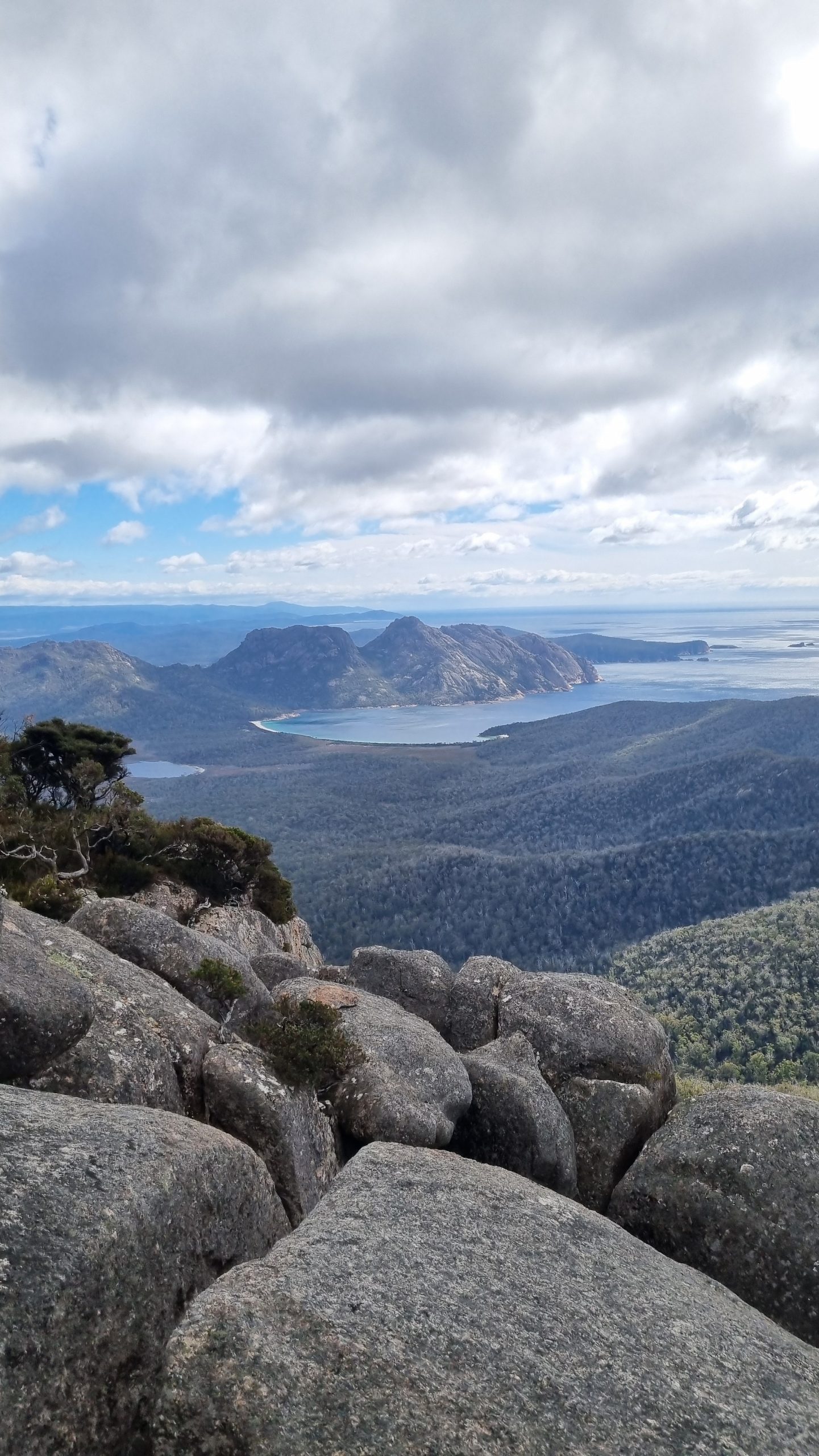The climb to Mount Freycinet’s summit was short — only 750m — but steep, with some gnarly rock scrambling.