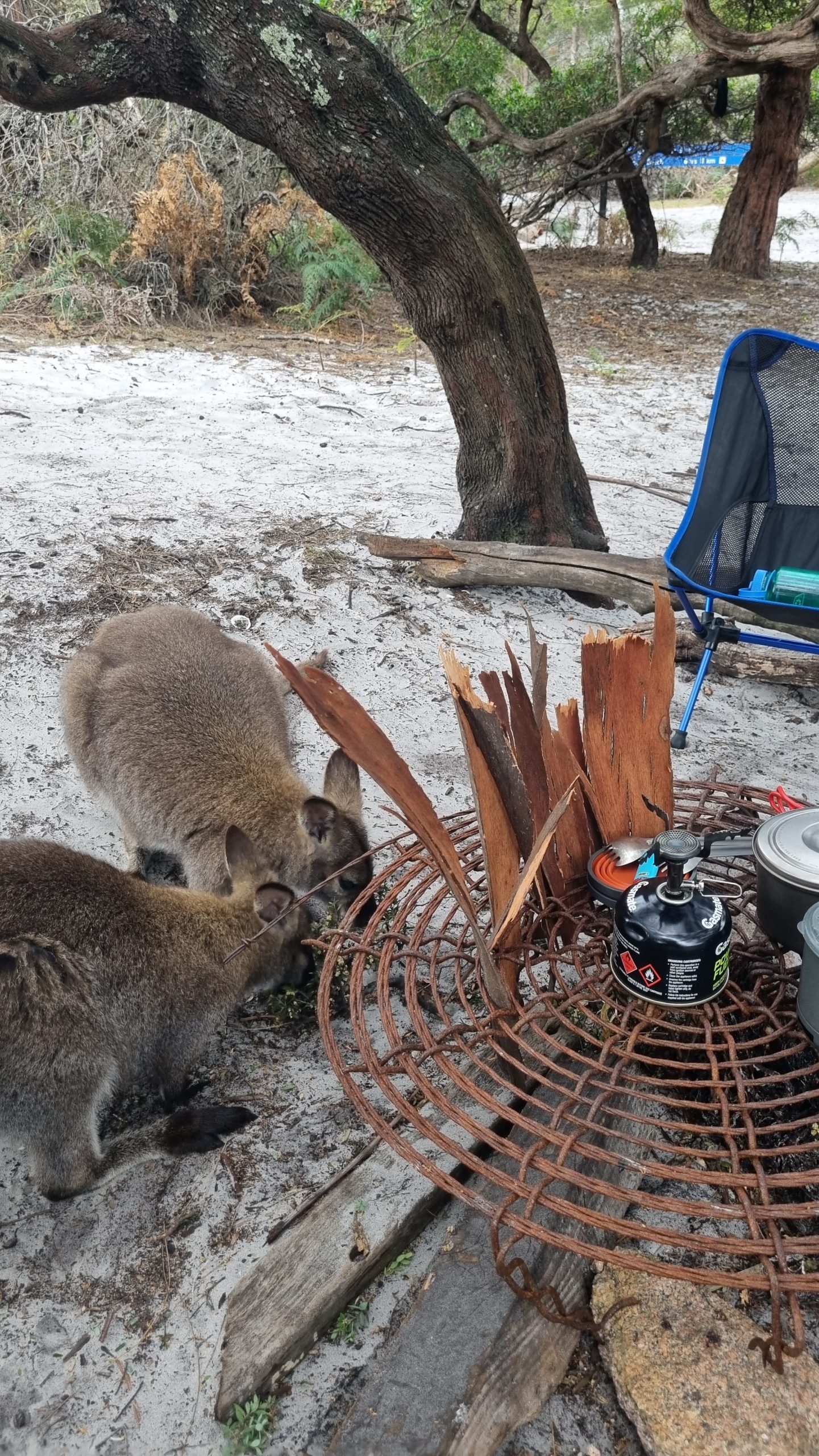 We set up camp in a sheltered spot behind the dunes and enjoyed a cuppa in the company of several curious Forester kangaroos.