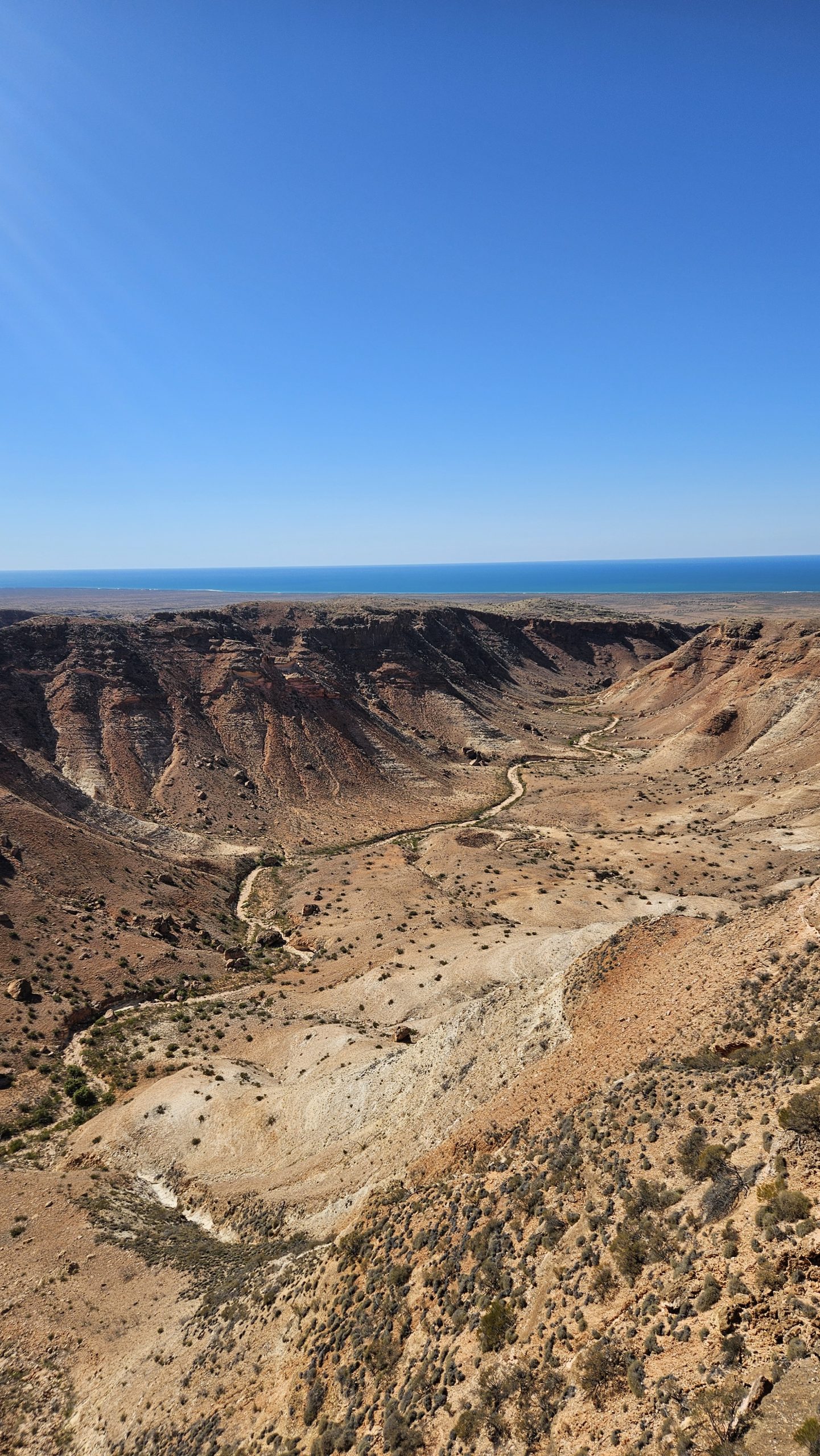 Follow Charles Knife Canyon Drive to the top of the range, where you’ll take in spectacular views of the rugged Cape Range and waters of Exmouth Gulf.