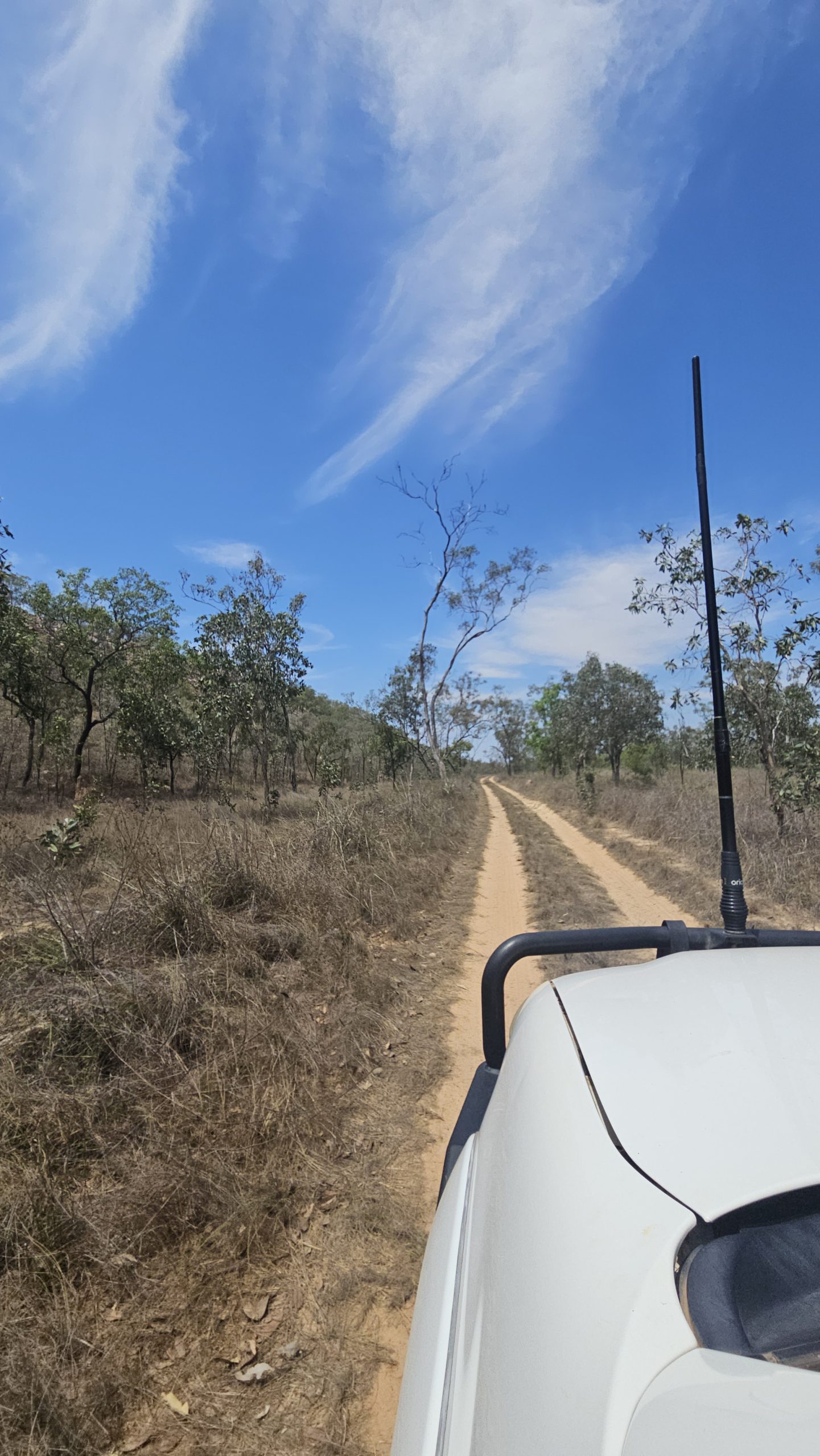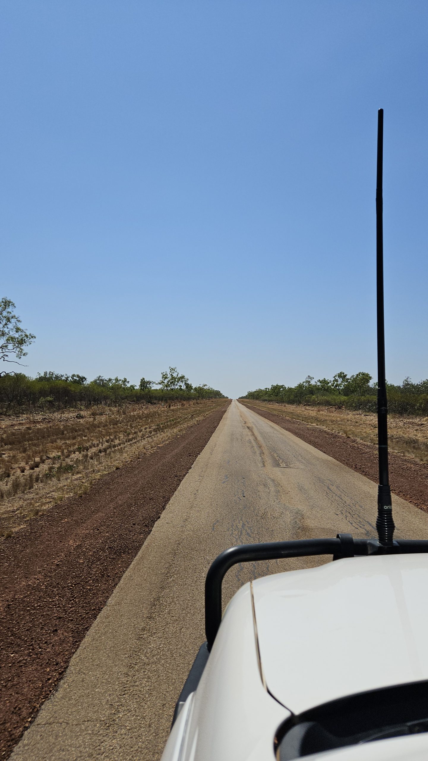 We came in from Daly Waters, travelling on a mostly single-lane road surrounded by vast, dusty landscapes and notorious for its potholes, cattle and heavy road train traffic.