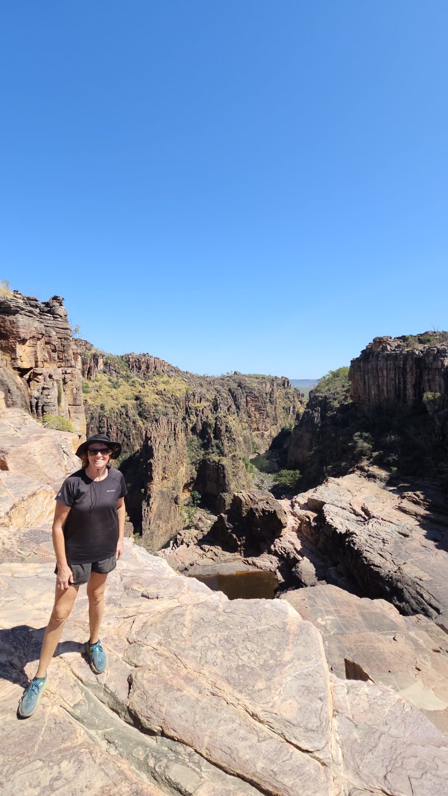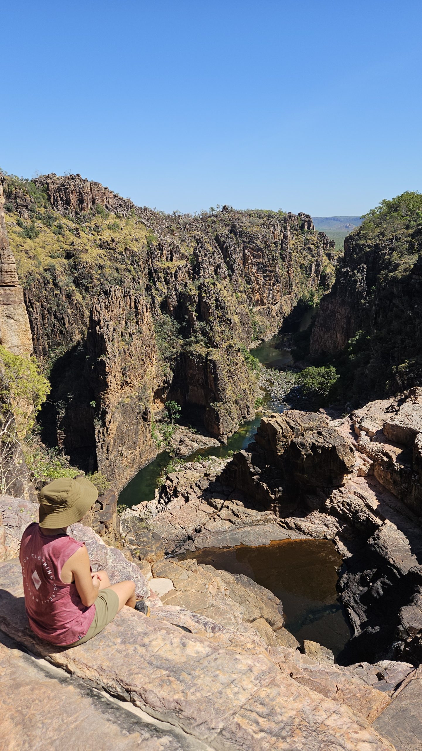 Next, head to Twin Falls (~1 hr, 70 km) and take on the 6 km escarpment trail. The cliffs deliver jaw-dropping views of the waterfalls and surrounding wilderness. From the very top of the 150 m cliff, watch water cascade over the Arnhem Land escarpment — it’s seriously breathtaking. The 4×4 track in is rough and the hike is steep, but totally worth it. Make sure to push a little past the main falls to cool off in one of the stunning plunge pools — we had the place to ourselves, and it felt wild and unforgettable.