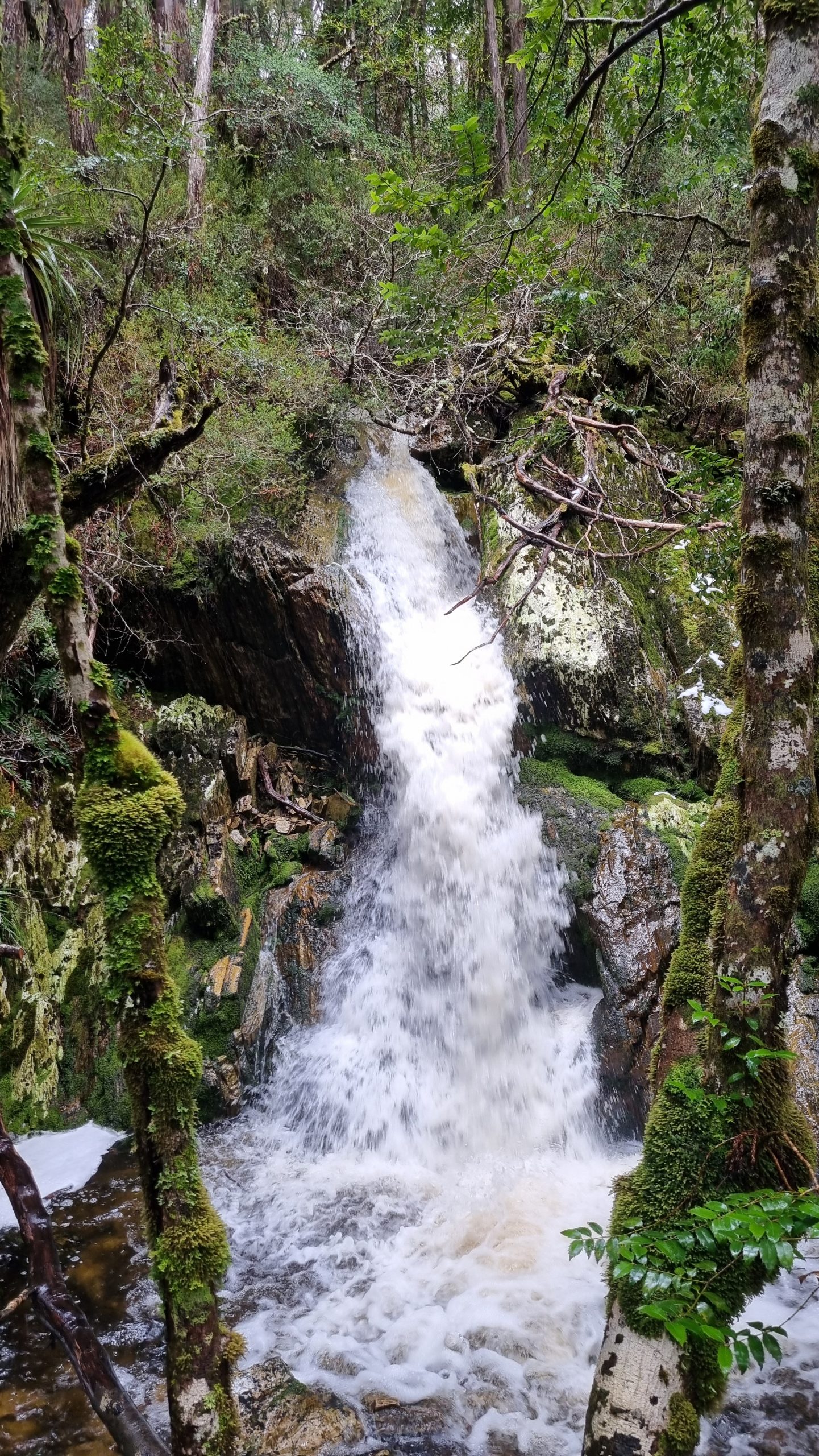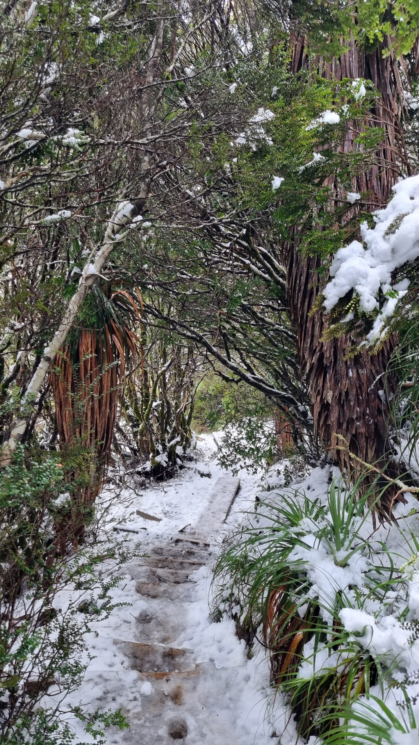 Within 30 minutes, we entered a rainforest landscape, with a beautiful flowing stream fed by several cascading waterfalls, before reemerging back onto the snowy plateau.