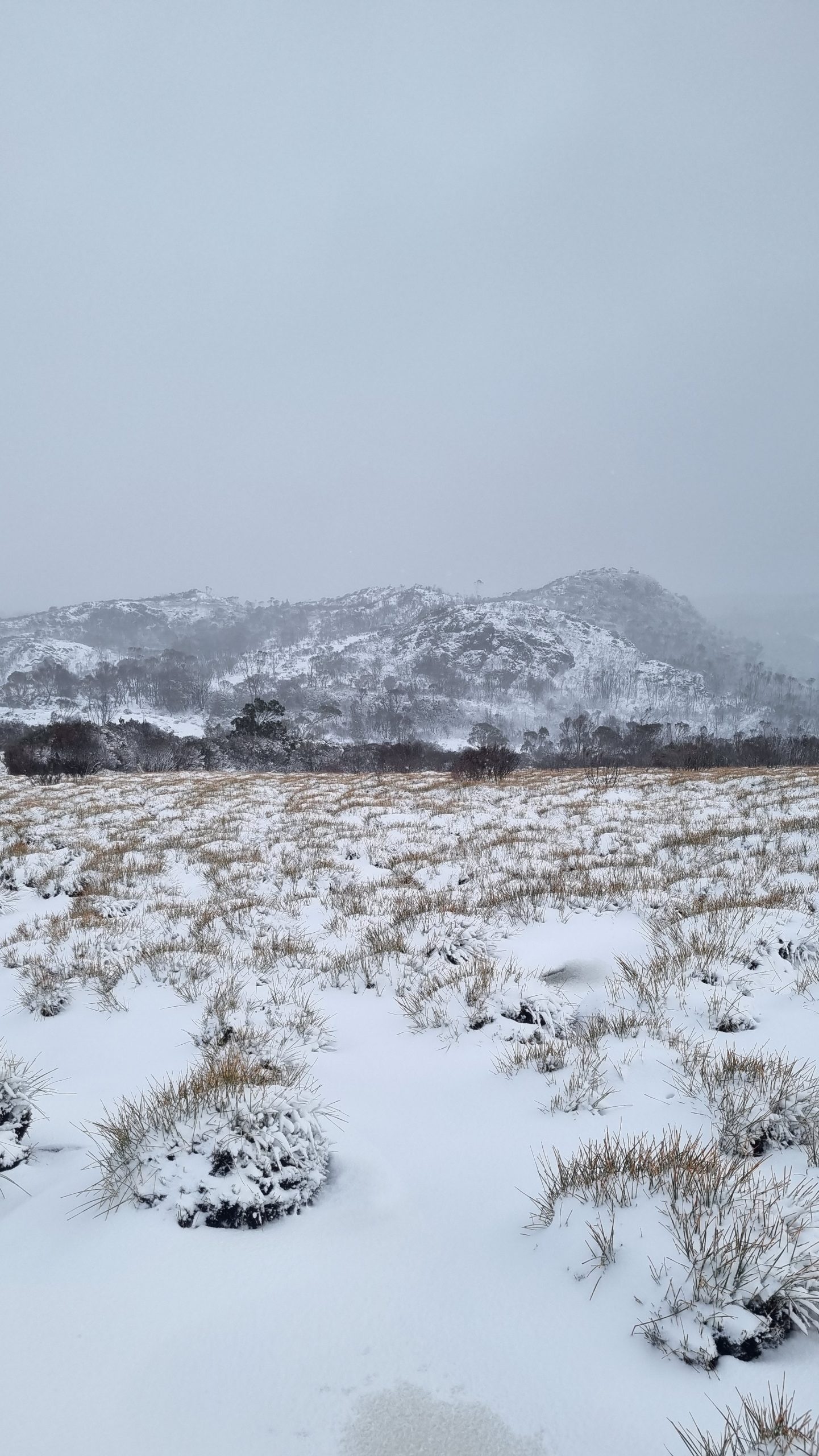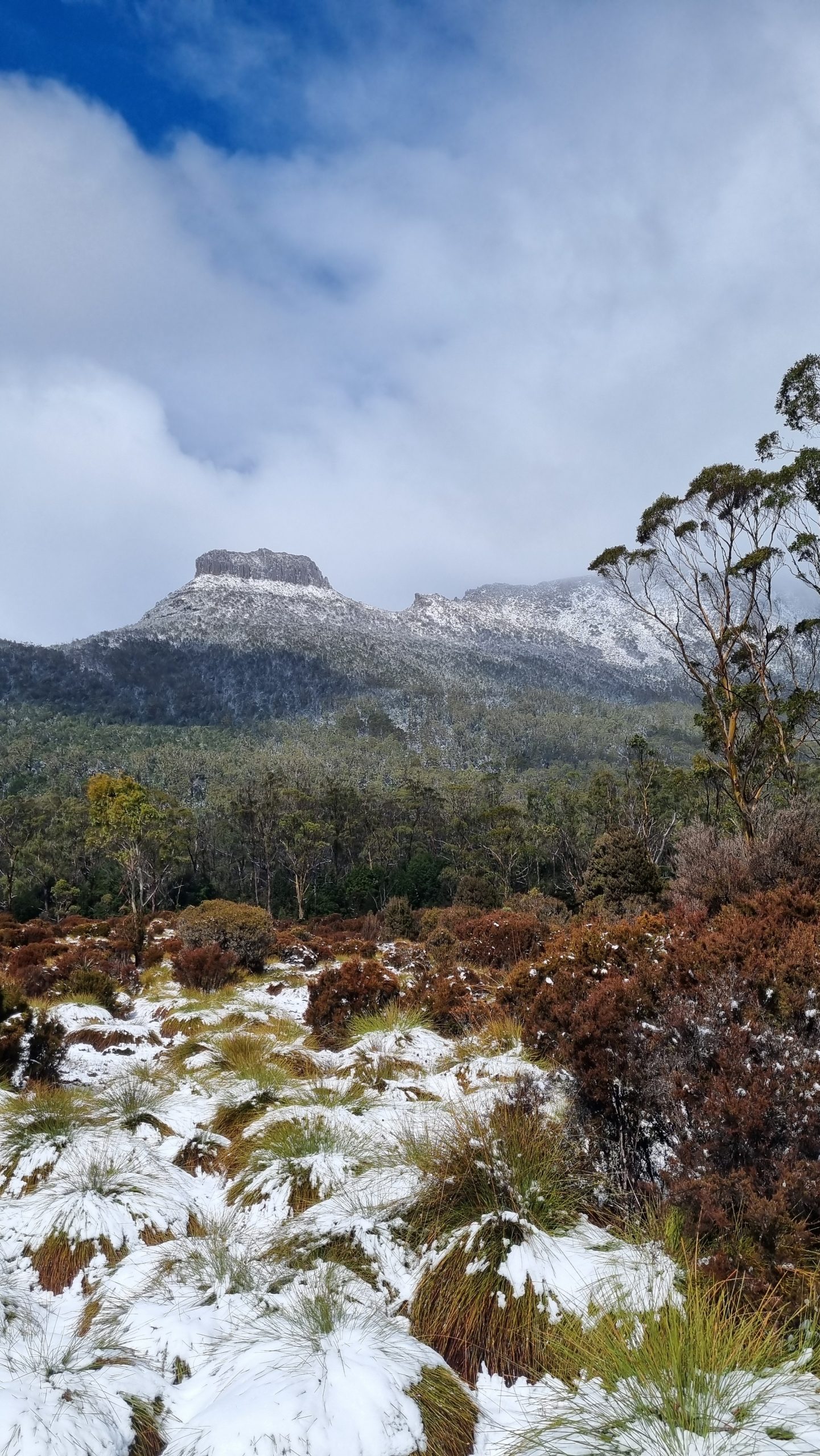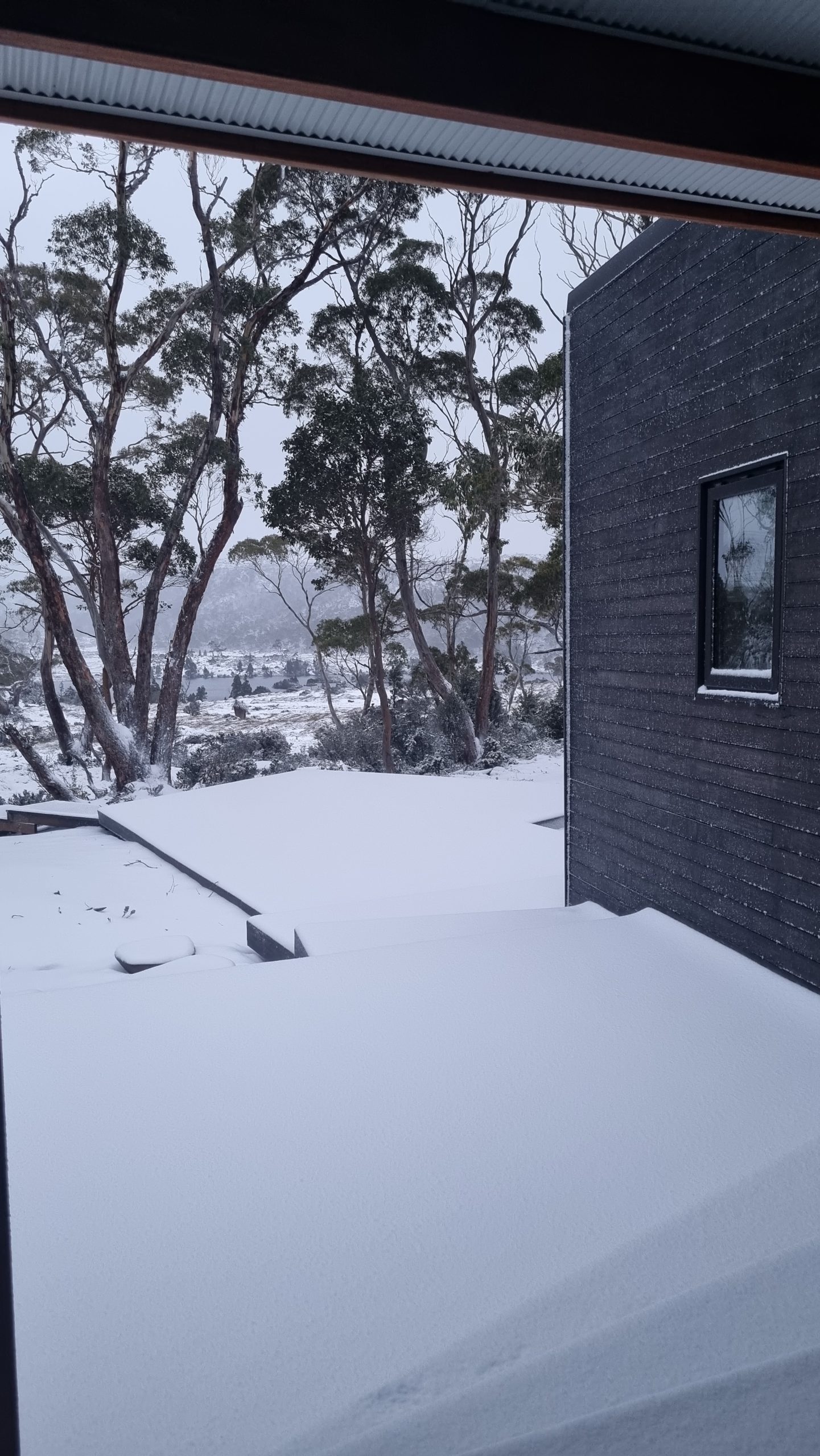 Yesterday, the only snow to be viewed was at the peak of a far mountain. Overnight, between 5 and 10cm of snow hit the ground.
