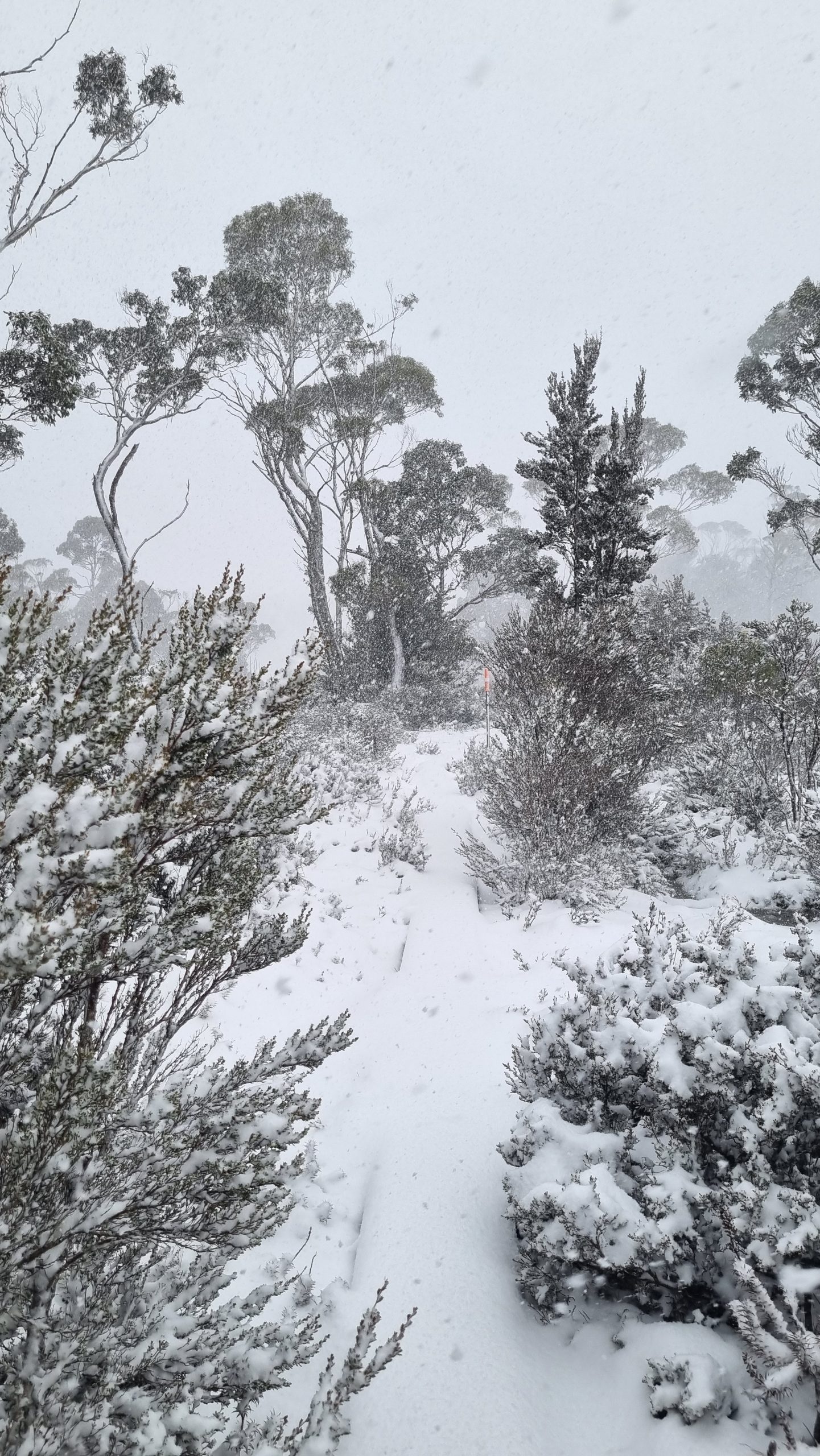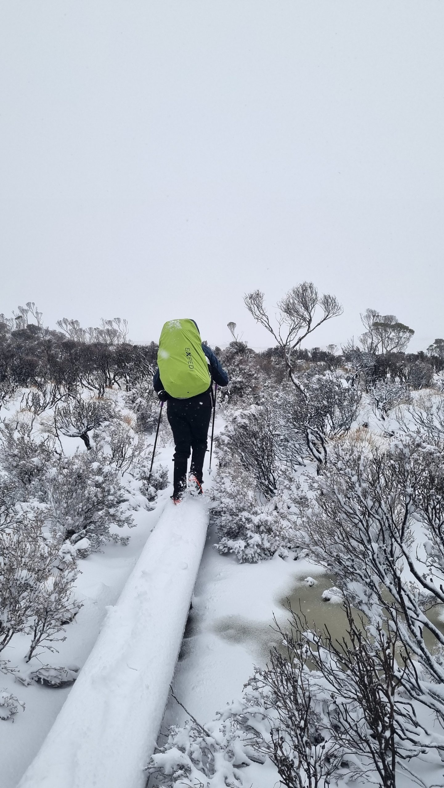 As snow continued to fall, we fare-welled our fellow hut companions and set off for what was going to be our biggest day yet – 16km of snow covered landscapes.