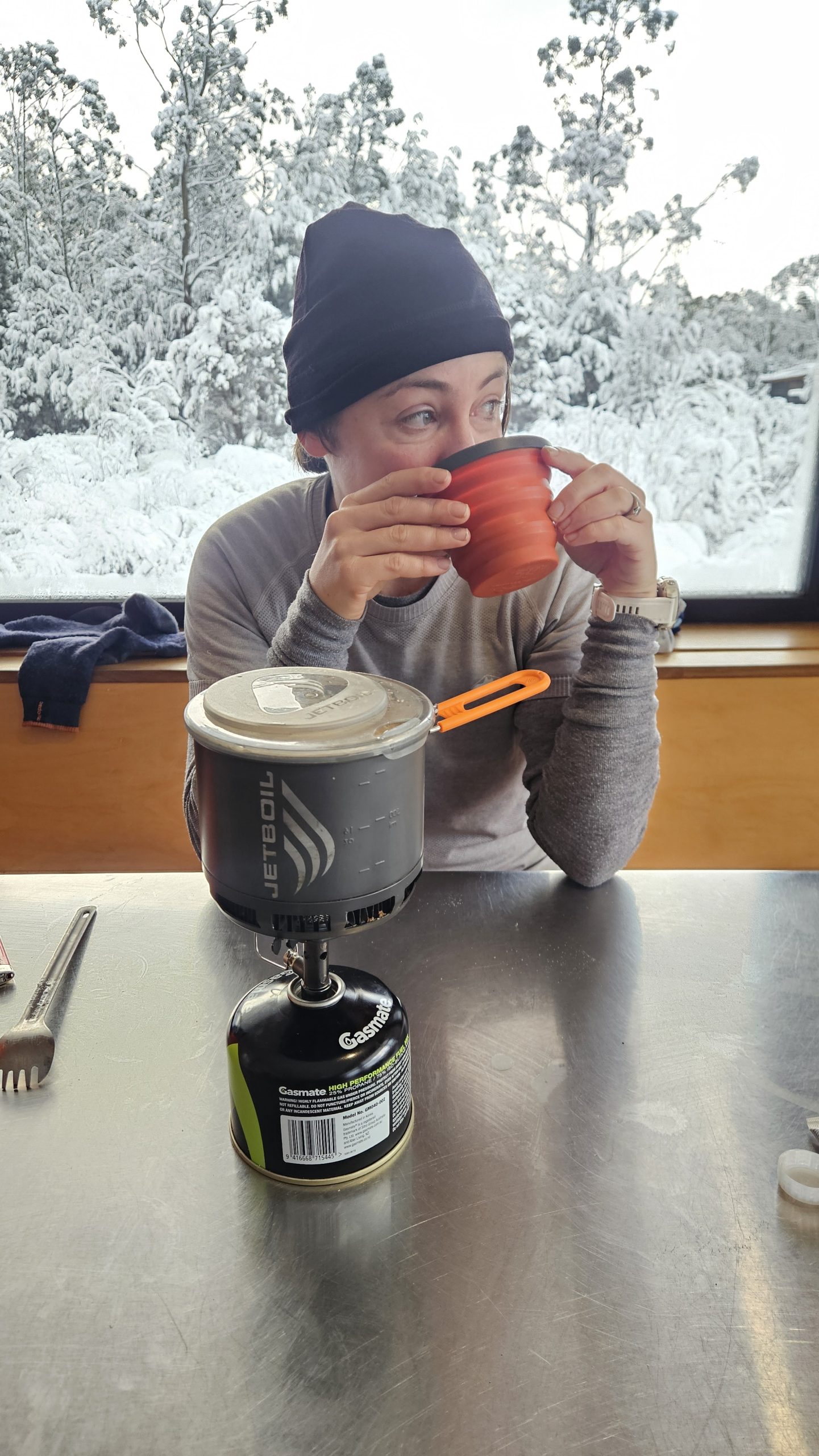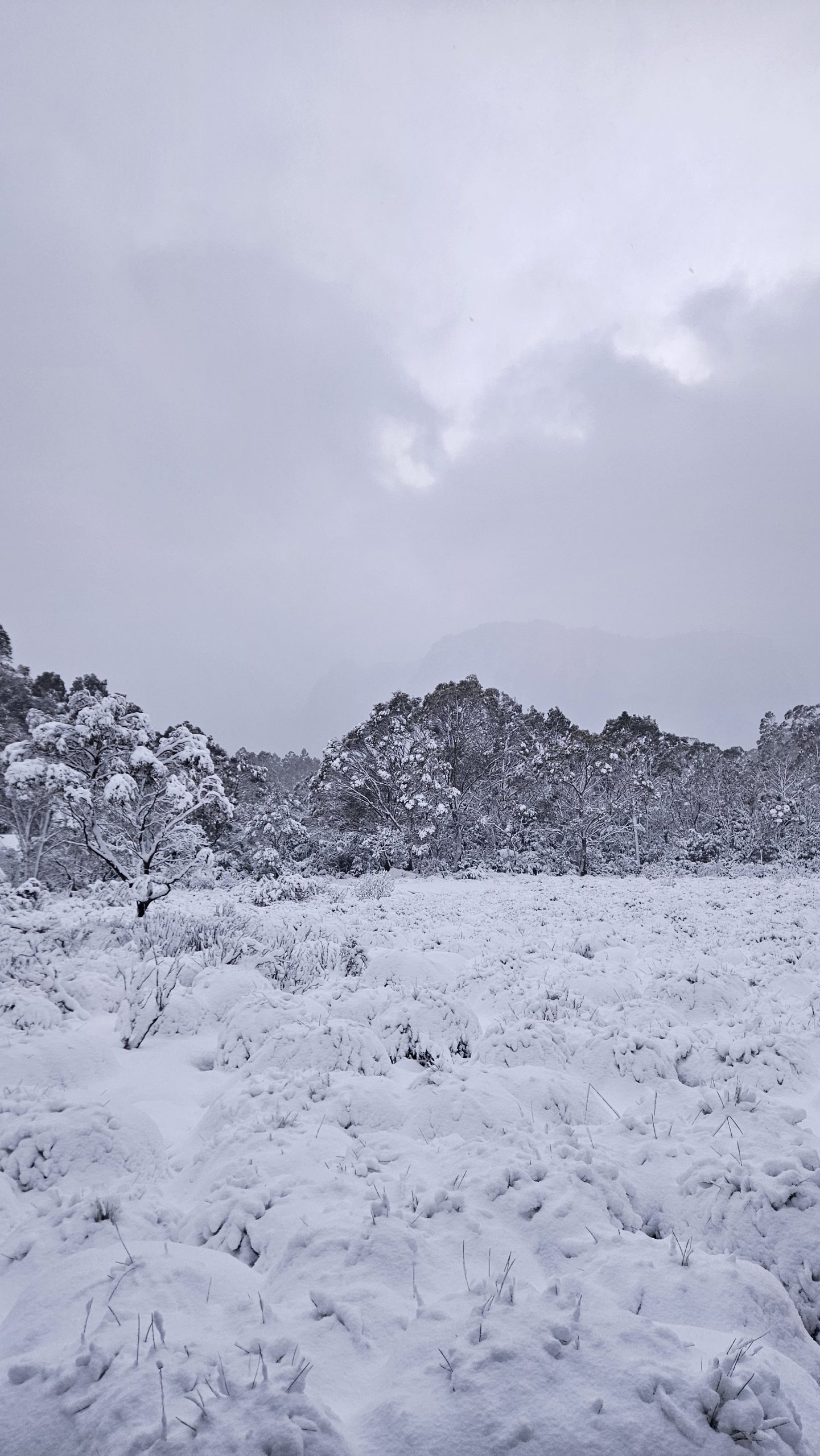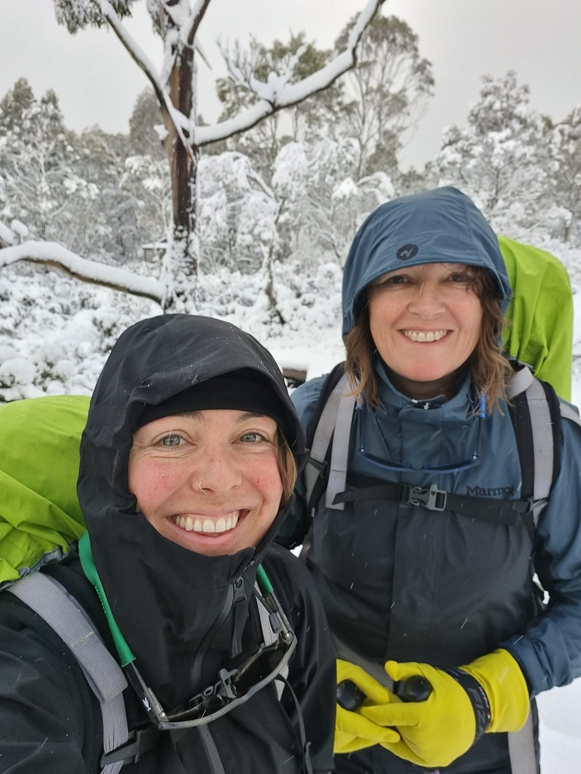 The bushes surrounding the hut were covered in 20cm of fluffy white snow – a complete transformation of the earthy-coloured landscape from the day prior.
