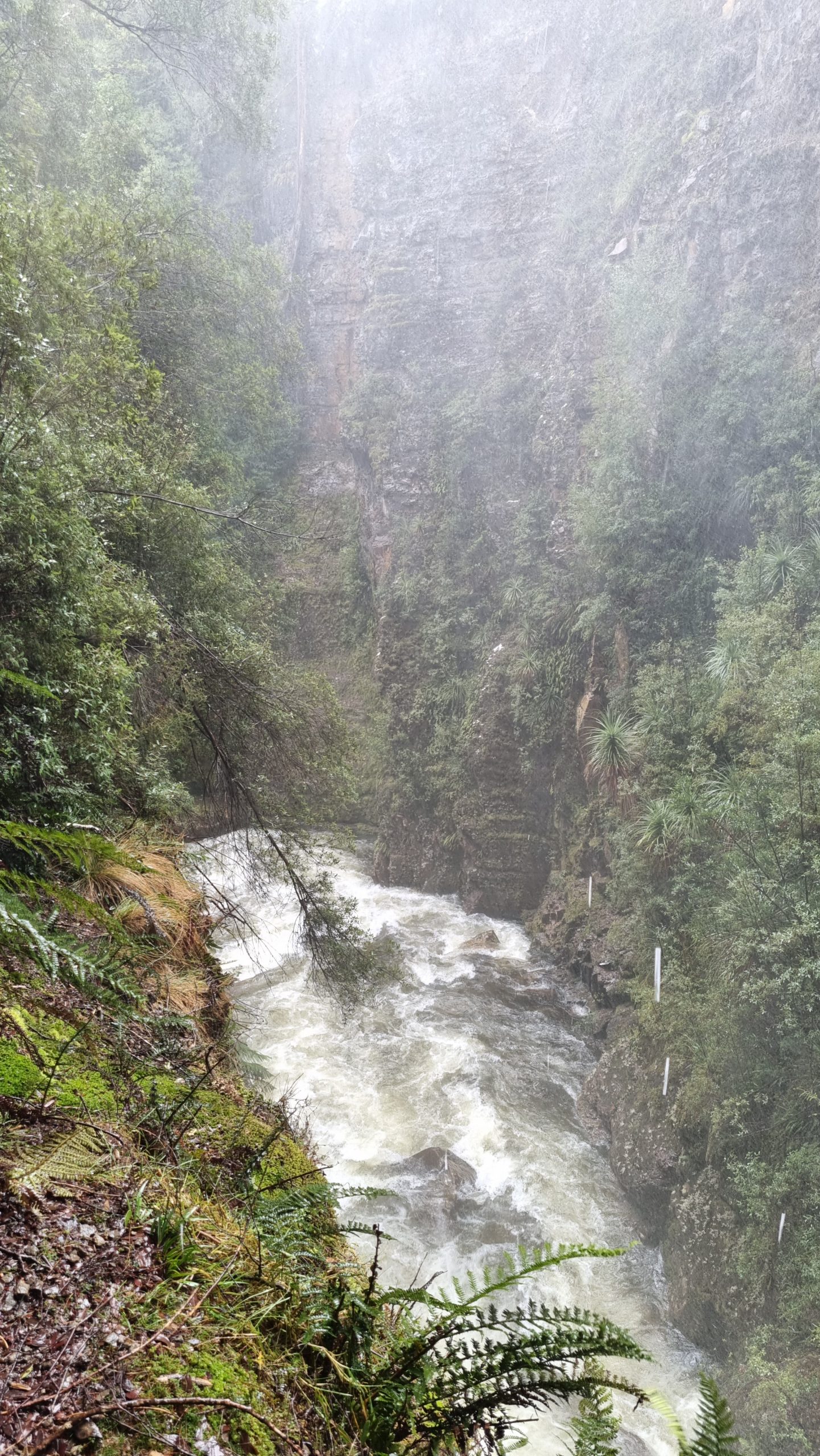 We followed slushy and muddy tracks through a damp forest to D’Alton and Fergusson Falls – a 1km side mission.