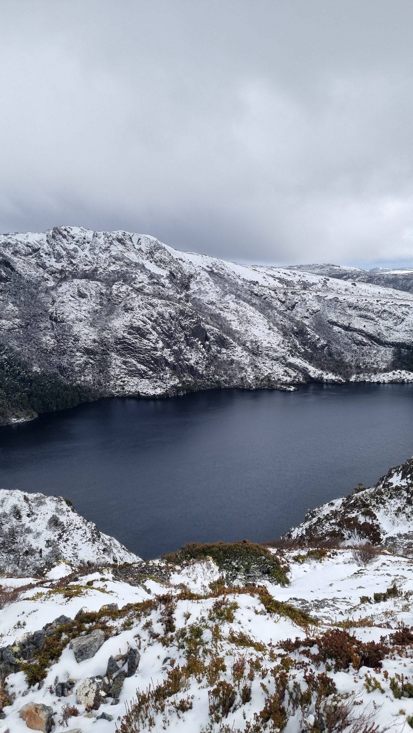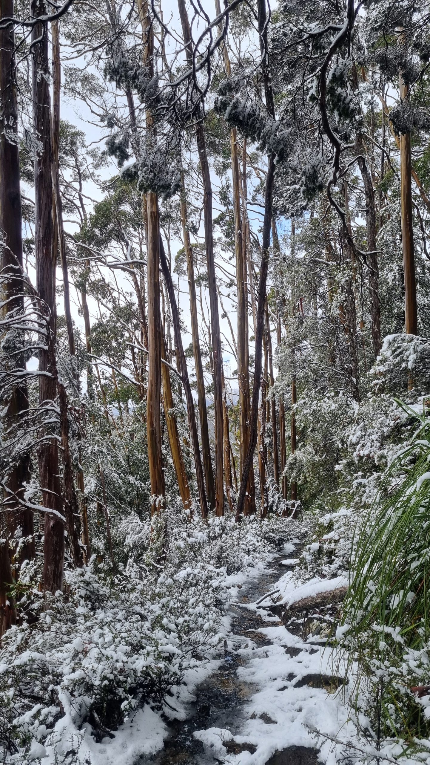 The conditions made summiting Cradle Mountain and Mt Ossa too risky. Instead, we soaked in sweeping views of snow-blanketed valleys, buttongrass plains, grazing wombats, sparkling glacial lakes, ancient forests and snow-capped peaks.
